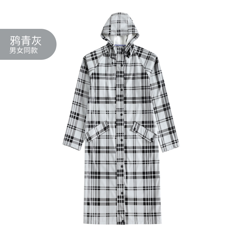 图2:琴飞曼时尚格纹风雨衣,鸦青灰,模特上身效果展示