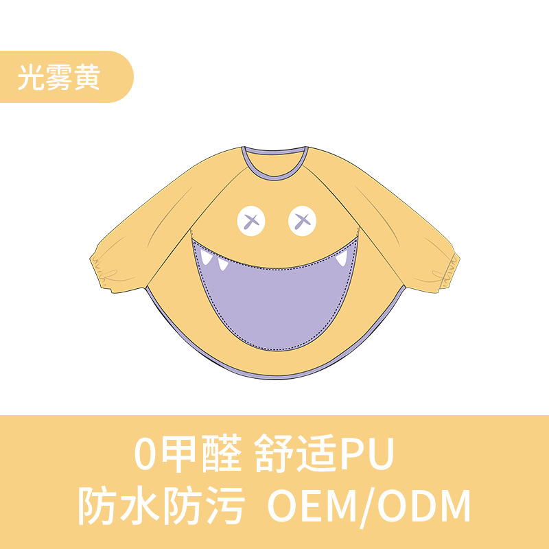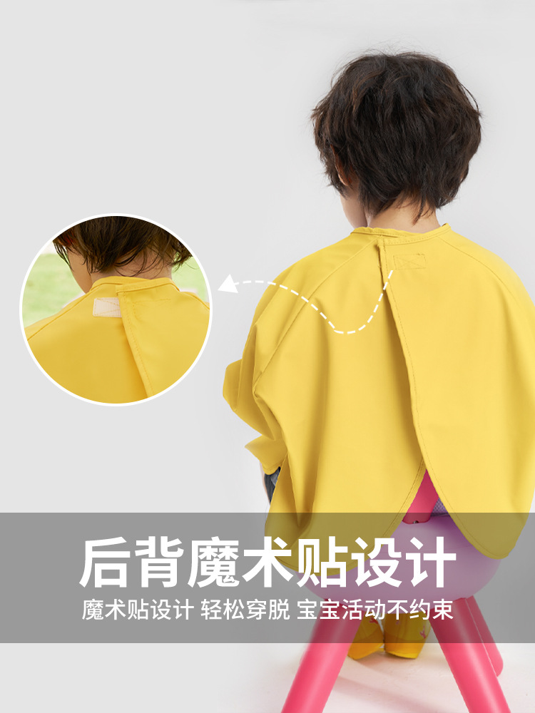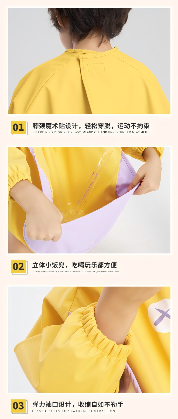 图3:细节展示脖颈魔术贴、立体饭兜、弹力袖口等设计