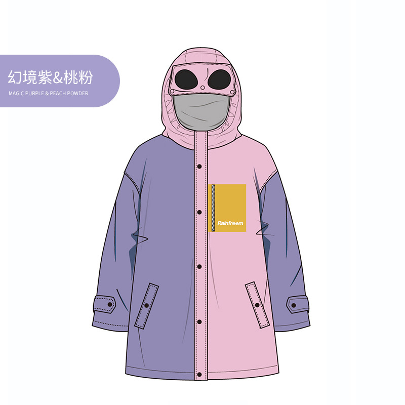 图1:琴飞曼趣酷软萌儿童雨衣,幻境紫+桃粉拼色款,防水反光眼镜设计