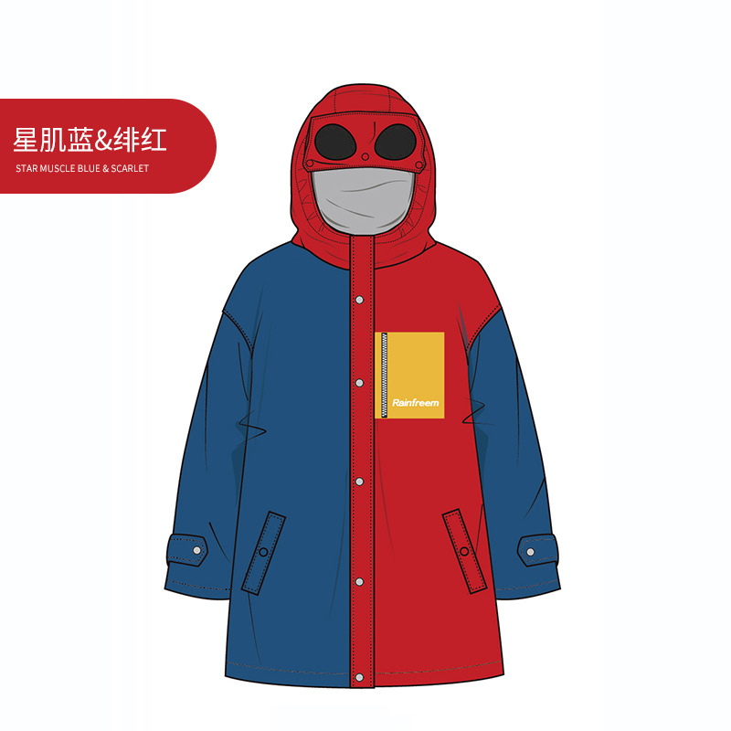 图2:琴飞曼趣酷软萌儿童雨衣,星肌蓝+绯红拼色款,酷炫儿童服装