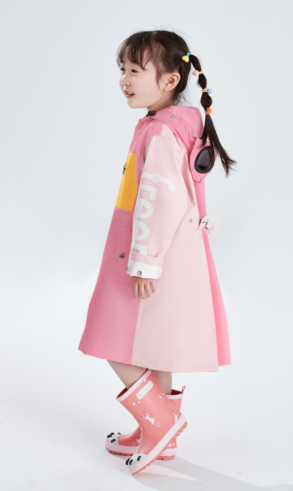 图4:琴飞曼趣酷软萌儿童雨衣,浅粉+玫瑰粉拼色款,软萌儿童服装