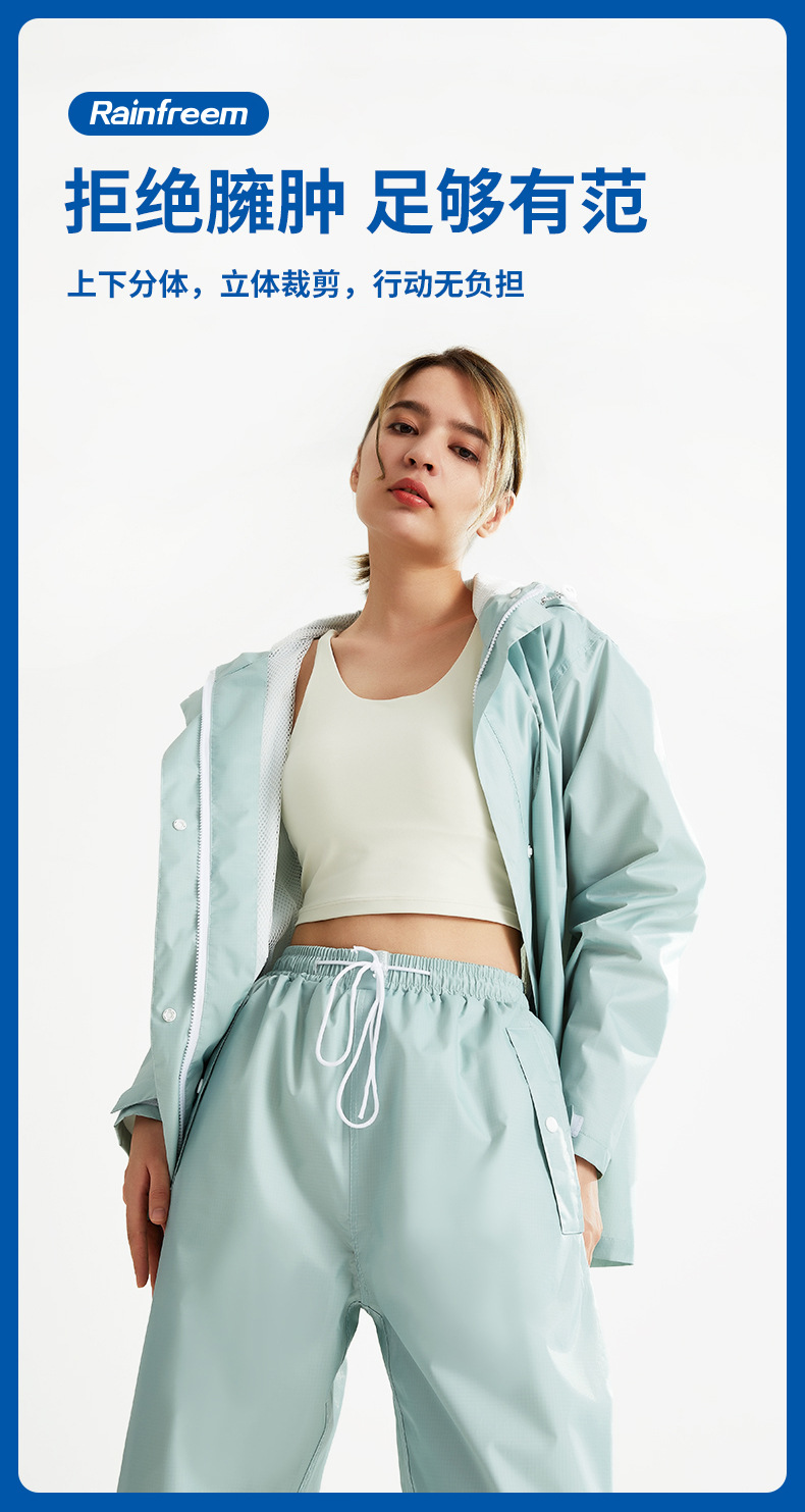 图3:琴飞曼新色系双层防雨雨衣套装,上下分体、立体剪裁
