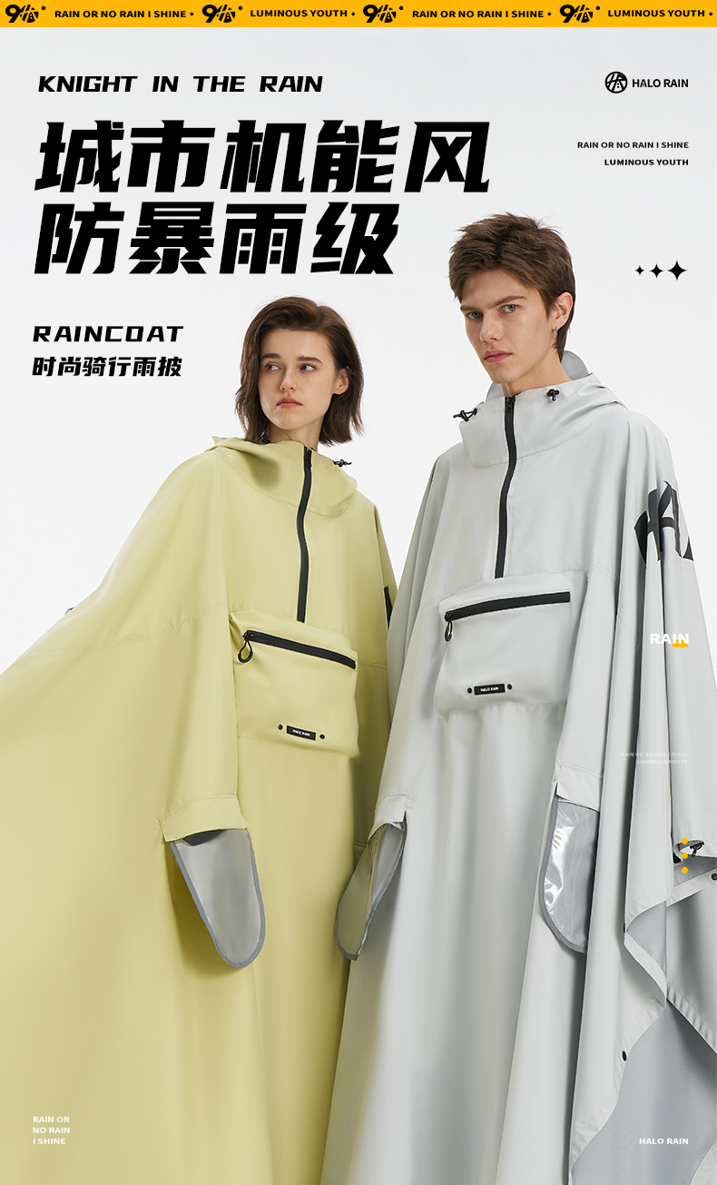 图1:徽雨Unisex系列城市机能风防暴雨级时尚骑行雨披,男女同款