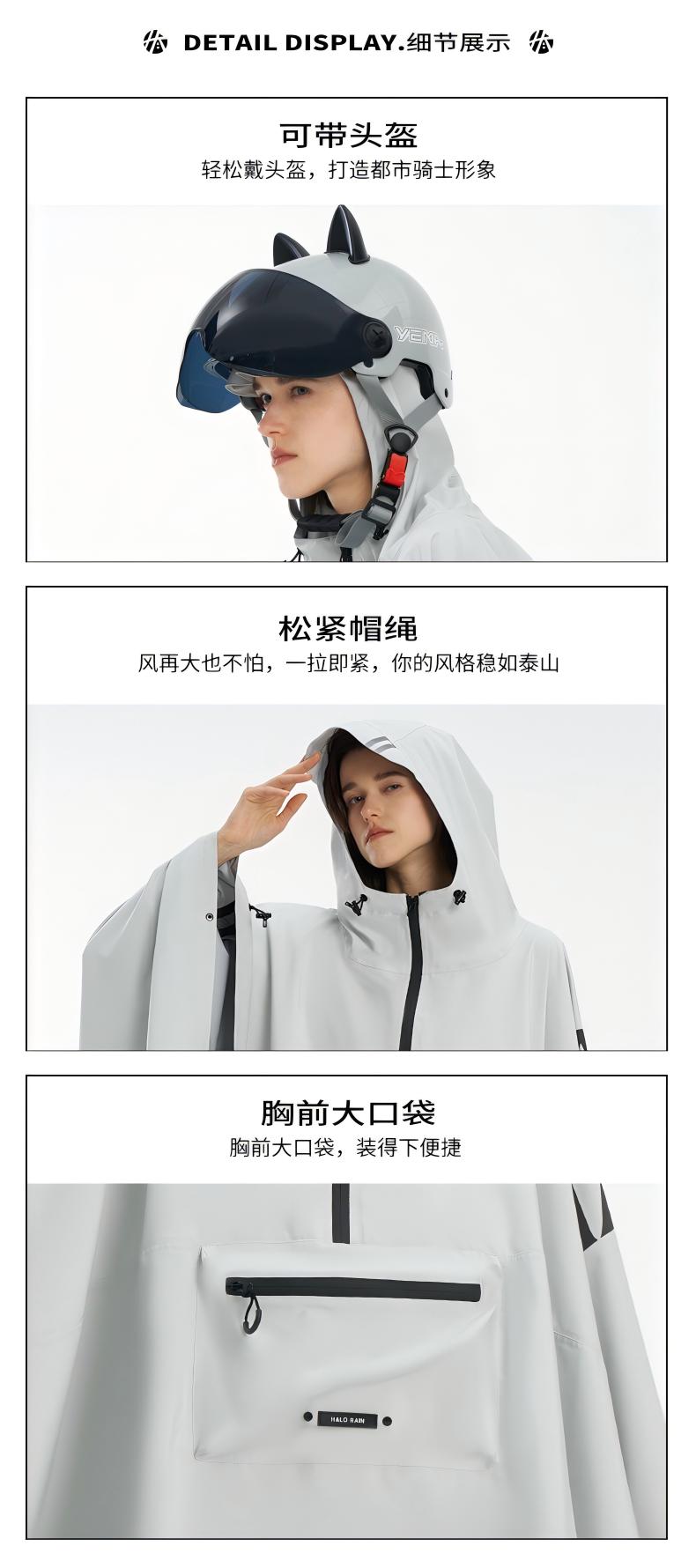 图5:徽雨Unisex系列城市机能风防暴雨级时尚骑行雨披,夜间高亮反光