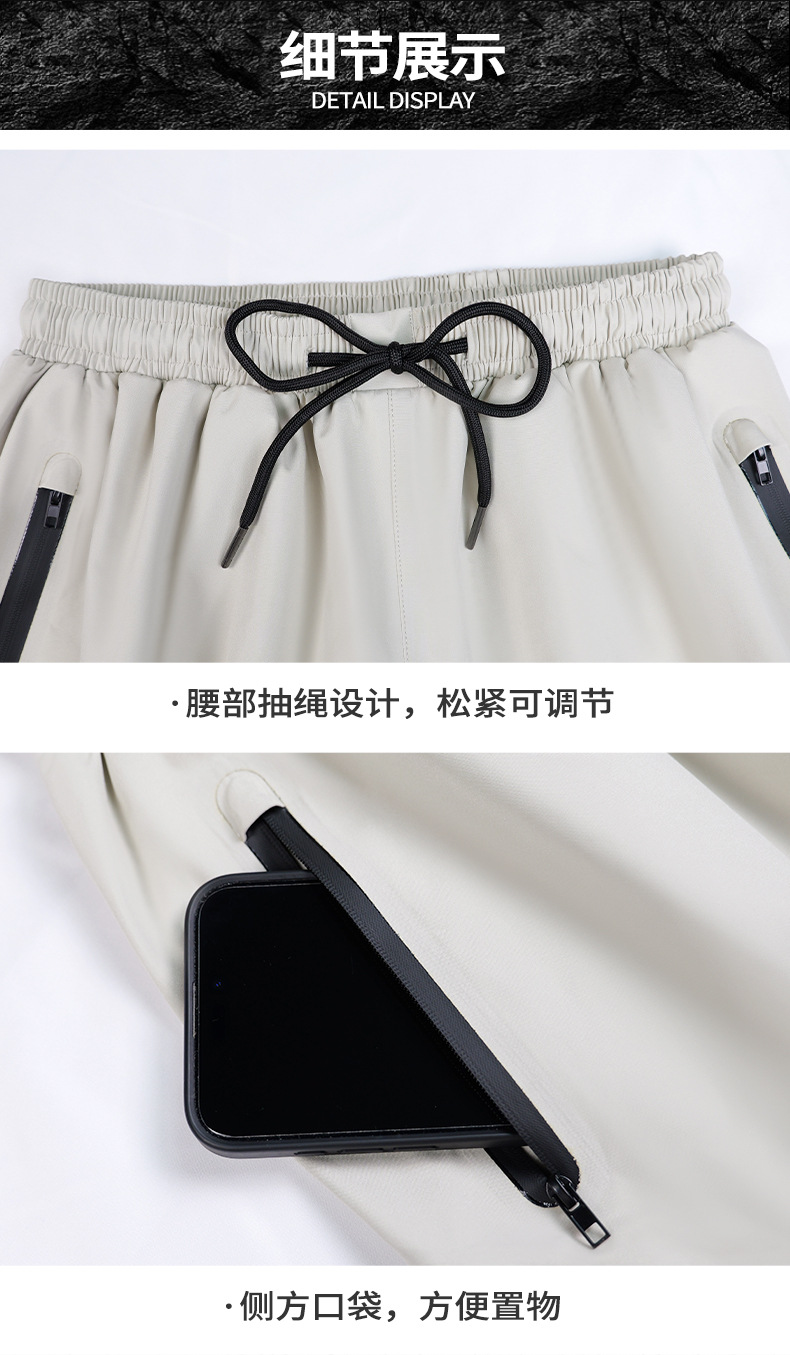 细节特点:腿部时尚线条、夜间高亮反光;腰部抽绳、侧方口袋、后腰透气孔、弹力裤脚抽绳。