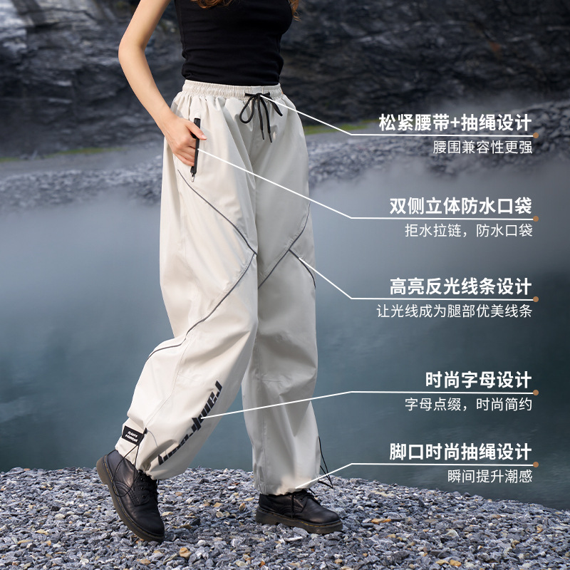 图2:琴飞曼多功能防雨冲锋裤,高亮反光腿部修饰线条