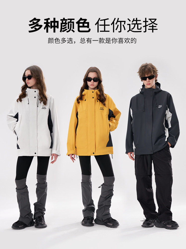 图2:琴飞曼户外撞色冲锋衣,中间为金盏黄色款
