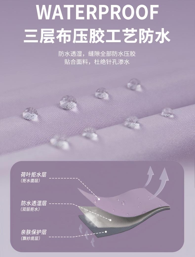 面料(英文 “Fabric”)是构成户外防水服饰的核心载体,作为服装 “材质、款式、色彩” 三要素之首,它不仅决定了雨衣雨披的防水功能性,更直接影响其耐用性、舒适性与设计表现力。优质的户外防水面料需同时满足高效阻水、透气排湿、抗撕裂耐磨等多维度性能,从而在复杂户外环境中为使用者提供可靠防护。